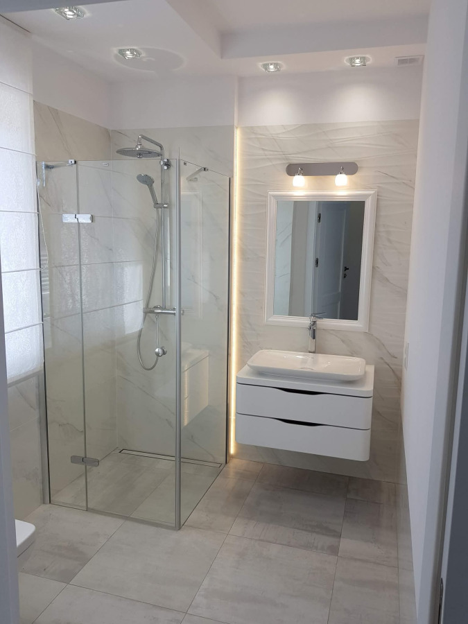 Łazienki (kompleksowe wykonawstwo, montaż urządzeń i armatury, ścianki)